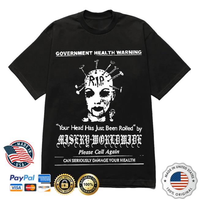 Official Misery Worldwide Government Health Warning Heads Will Roll Graphic Print Black Hot Shirt